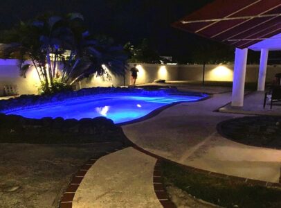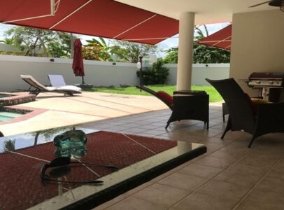Spectacular Rental property totally equipped and furnished in gated community with 24/7 security. This house has a generator and security windows and doors. The neighborhood is family oriented and pet friendly. This spacious house has four bedrooms, three baths, closed carport, high ceilings in Grand Room, and a terrace overlooking its private pool. The grand Piano in the Open Family dinning living room is great for activities and family gatherings. A must see!
