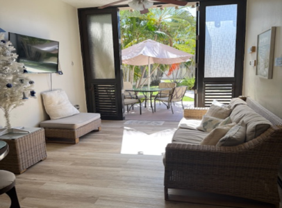 Enjoy a resort style, private family oriented neighborhood property, 5 minutes from the poblado of Boqueron, perfect for relaxing. Bring your clothes and enjoy this fully furnished cozy apartment located steps from a private beach, with 24 hour security, dry boat storage, private dock, minutes from downtown, shops, restaurants, and supermarkets. Property is a garden two bedroom one bath apartment totally furnished with a private laundry with washer/ dryer, queen bed, bunk bed, and 3 A/C units and fully equipped located in front of swimming pool and walking distance from the beach, tennis and basketball courts. Enjoy Bar B Q on the terrace overlooking the pool and grounds, and air condition rooms perfect for resting. Don’t miss the opportunity to live in Paradise.